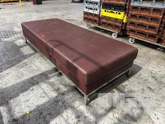 SOFA BENCH, BURGUNDY VINYL TOP, CHROME BASE 2000 x 770mm