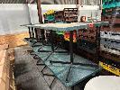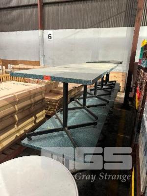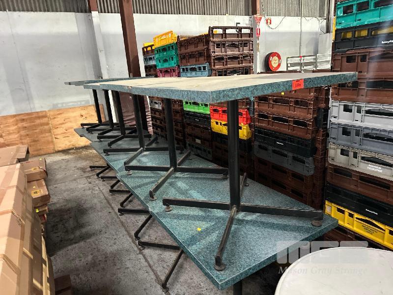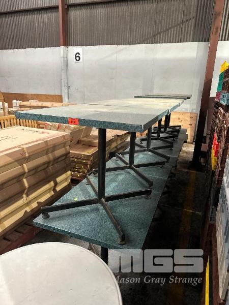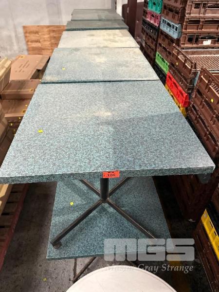 12 x CAFE TABLES, BLUE MARBLE LOOK TOP, BLACK PEDESTAL BASE