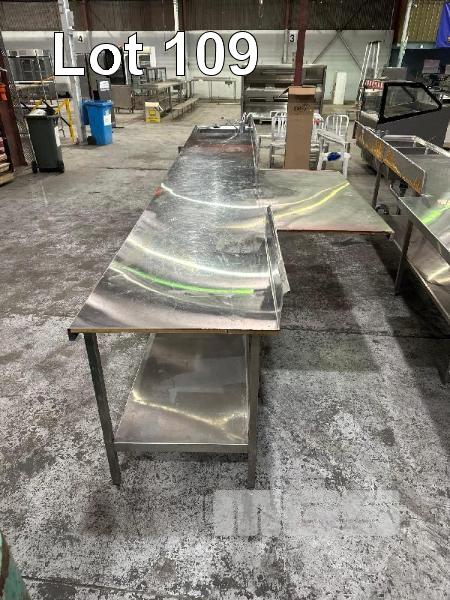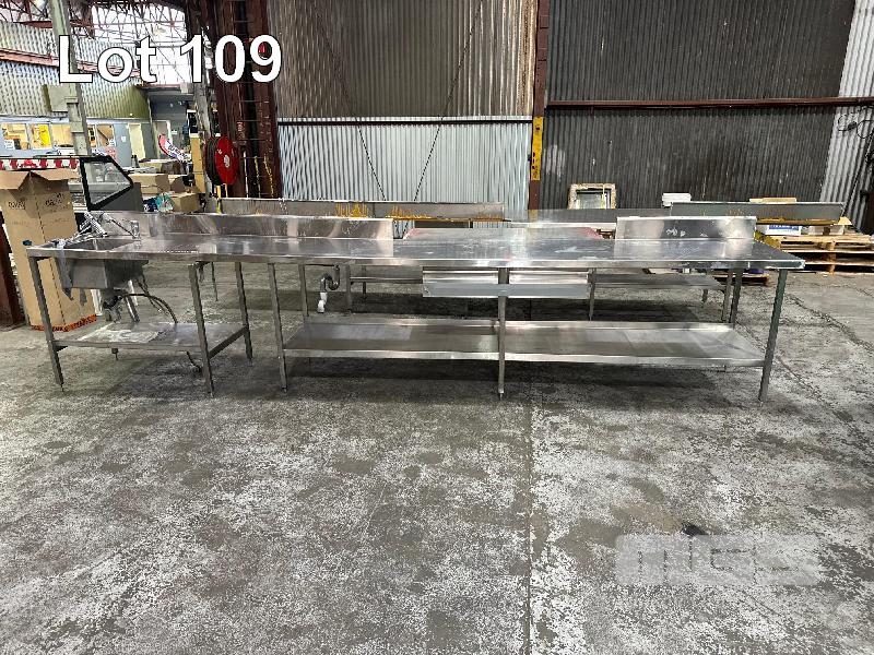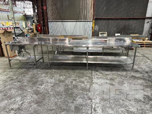 STAINLESS STEEL BENCH, 4520 x 700 x 910mm (H), 2 TIER, SINGLE BOWL WITH SPLASHBACK