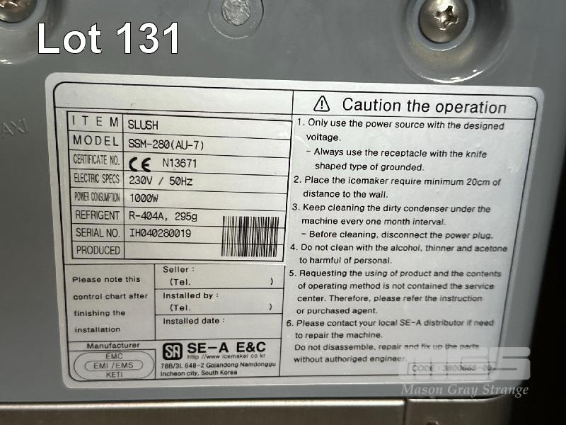 SLUSHIE MACHINE, EMC 1000w DOM: 2019 240V, 10 AMP