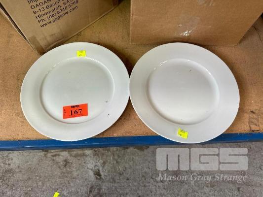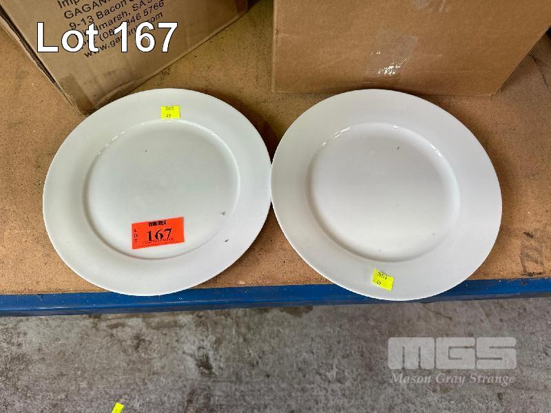 38 x WHITE PORCELAIN PLATES, 27cm ROUND 2 x BOXES