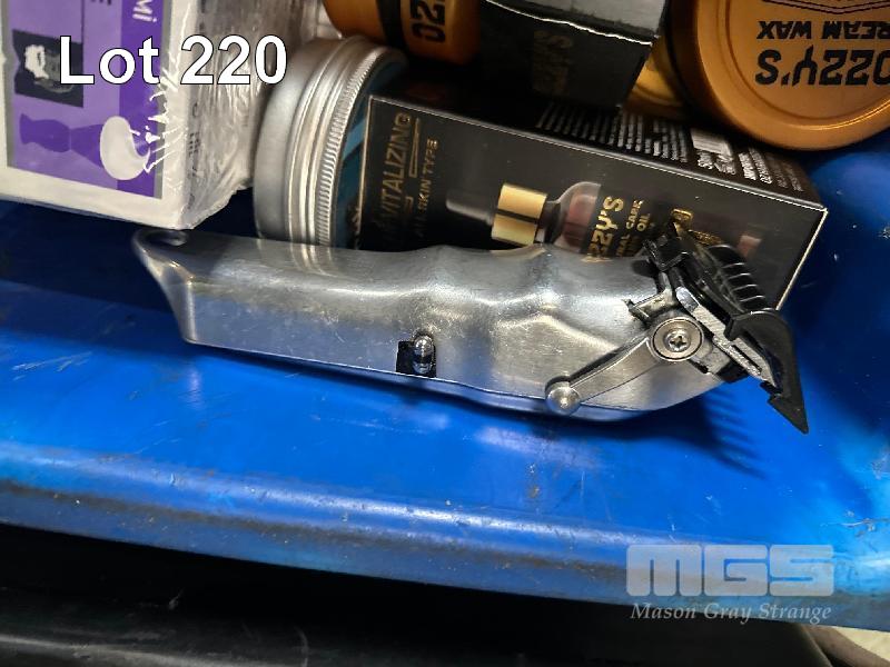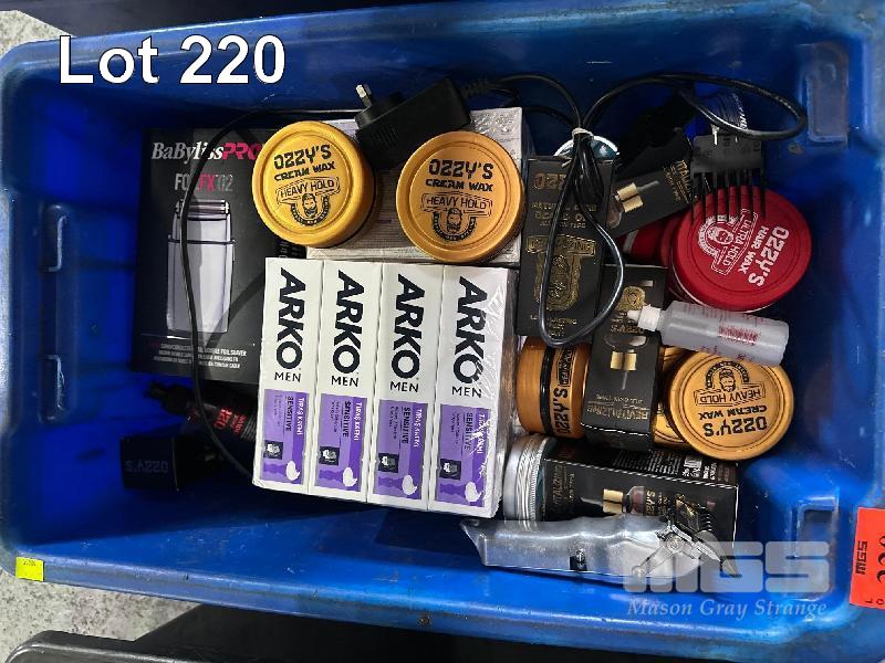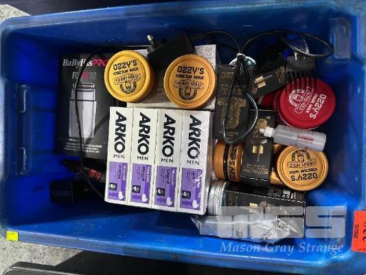 ASSORTED HAIR PRODUCTS, WAX, CLIPPERS, ETC 1 x TUB