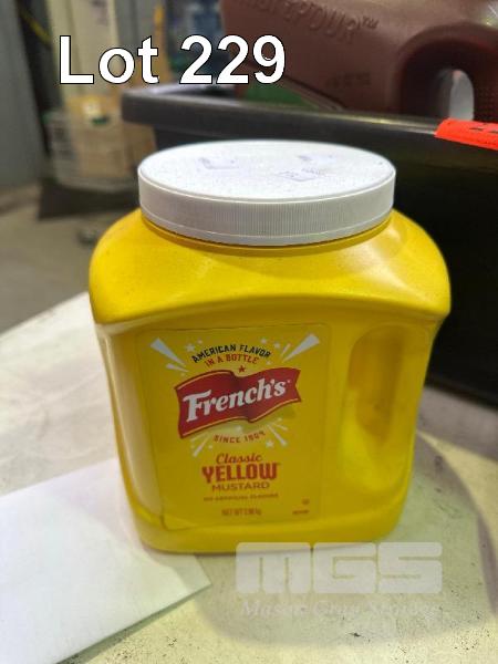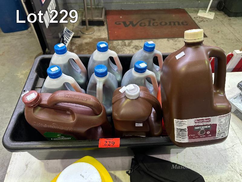 6 x BOTTLES MAPLE FLAVOURED SYRUP, 3 LITRE, 1 x BOTTLE MANGO TOPPING, 3 LITRE, 1 x BOTTLE SMOKEY BBQ SAUCE, 4.5kg, 1 x BOTTLE BBQ SAUCE, 4 LITRE, 1 x BOTTLE WORCESTERSHIRE SAUCE, 4 LITRE & 1 x FRENCH CLASSIC YELLOW MUSTARD, 2.98kg