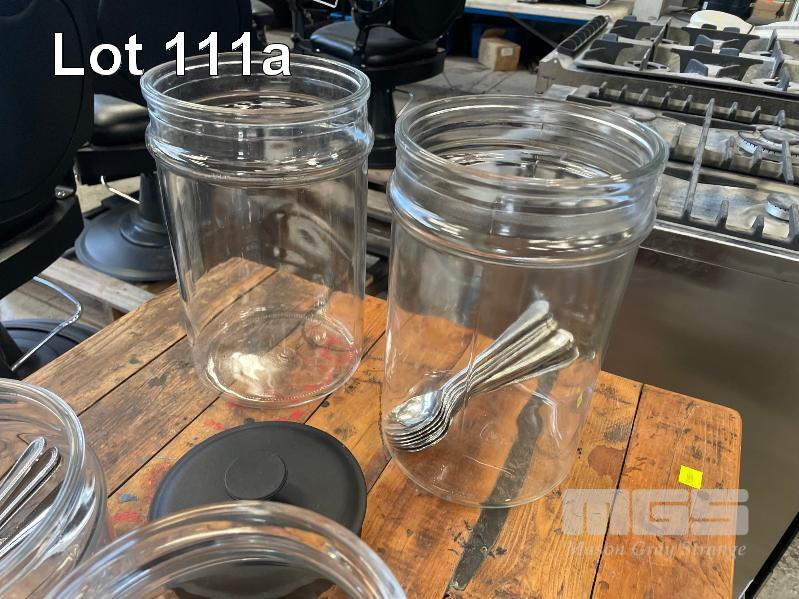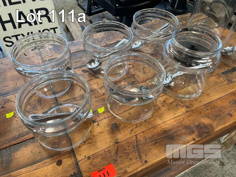 3 x MAXWELL WILLIAMS 24cm BOWLS, 1 x MAXWELL WILLIAMS 28cm BOWL, 8 x GLASS STORAGE CONTAINERS, 38 x DESSERT SPOONS