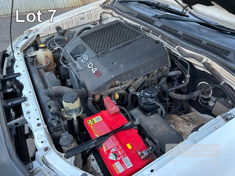 2011 TOYOTA HILUX KUN16R DUAL CAB TRAY TOP REG: S957 ALW (SA) VIN: MR0EZ12G804154543 ENG: 1KD5387370 ODO: 252,713kms SHOWING 3.0 LITRE TURBO DIESEL, MANUAL TRANSMISSION, WHITE DUCO, 4 DOORS, 5 SEAT, AIR BAG, AIR CON, CARGO BARRIER, CD PLAYER, CENTRAL LOCKING, IMMOBILISER, POWER STEERING, POWER WINDOWS, SPARE WHEEL, TOW BAR, STEEL TRAY KEY #13 (NO PAPERS, WITH 2 KEY/S, WITH OWNER'S MANUAL, WITH SERVICE BOOKS)