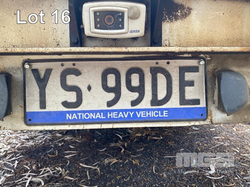 2005 COMBO INDUSTRIES 20' TANDEM AXLE PLANT TRAILER MODEL: COMBO PT2L REG: YS 99 DE (NHV) VIN / CHASSIS: 6TNT2300S521NC006 ATM: 9,000kg SPRING SUSPENSION, 8.25R 15TR, DRUM AIR BRAKES, RING FEEDER HITCH HYDRAULIC LIFT REAR LOADING RAMPS FRONT MOUNT 12V HYDRAULIC PUMP CHECKER PLATE STEEL DECK SIZE: 6100 x 1900mm FITTED WITH OVERHEAD CARRY RACK, SIZE: 2100 x 1900 x 1120mm (H) FRONT & REAR MOUNT ADJUSTABLE SUPPORT LEGS SIDE MOUNT TOOL BOX REVERSE CAMERA 2 x SPARE WHEELS GTM: 8,000kg
