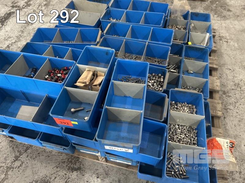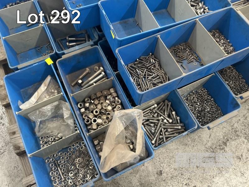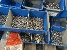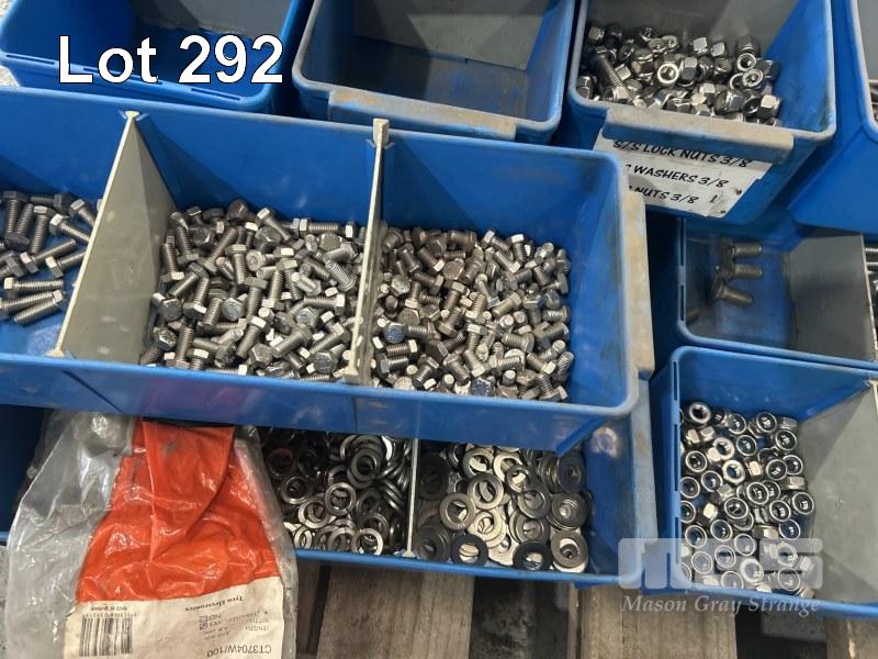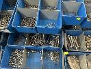 STAINLESS STEEL NUTS, BOLTS, WASHERS & FASTENERS, ASSORTED SIZES IN MATCHING BLUE POLY PARTS DRAWERS