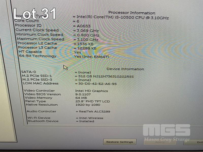 ALL-IN-ONE PC, DELL OPTIPLEX 7480, CORE i5 10500 (10TH GEN) @ 3.1GHz, 8GB DDR4 RAM, 512GB NVMe M.2 SSD, INBUILT 23.8" FHD WIDESCREEN (1920x1080), INTEL HD VIDEO, WEBCAM, 5 x USB, 1 x USB-C, Wi-Fi, BLUETOOTH, WINDOWS 11 HOME INSTALLED, KEYBOARD & MOUSE S/N:6HX54F3