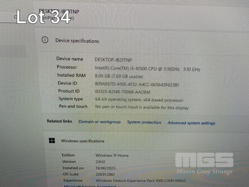 ALL-IN-ONE PC, DELL OPTIPLEX 7480, CORE i5 10500 (10TH GEN) @ 3.1GHz, 8GB DDR4 RAM, 512GB NVMe M.2 SSD, INBUILT 23.8" FHD WIDESCREEN (1920x1080), INTEL HD VIDEO, WEBCAM, 5 x USB, 1 x USB-C, Wi-Fi, BLUETOOTH, WINDOWS 11 HOME INSTALLED, KEYBOARD & MOUSE S/N:GGX54F3