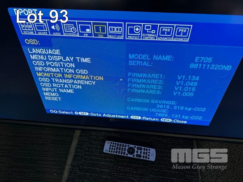 MONITOR, NEC MULTISYNC E705 70" COMMERCIAL LCD DISPLAY WITH REMOTE (NO STAND) S/N:88111320NB