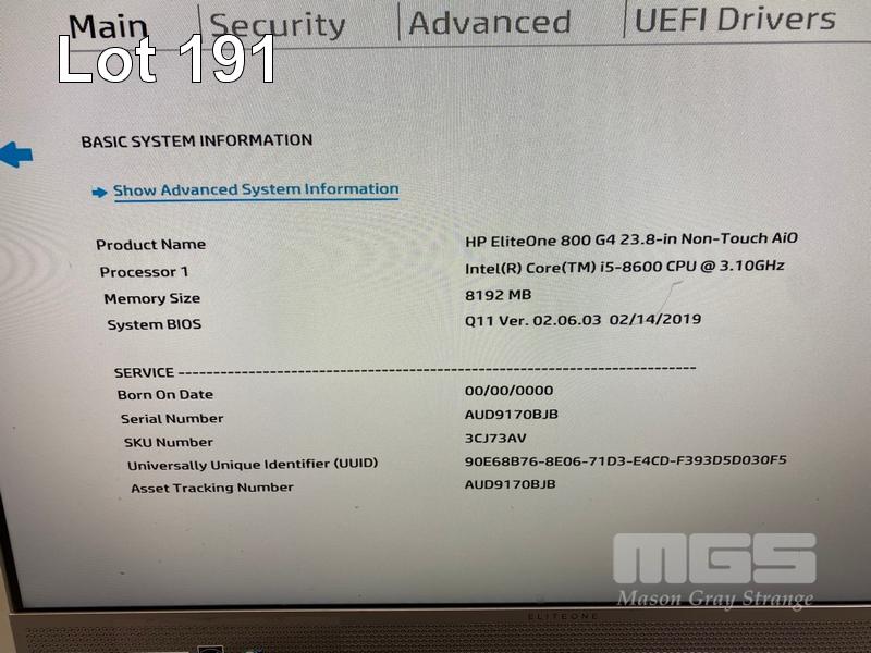 ALL-IN-ONE PC, HP ELITEONE 800 G4, CORE i5 8600 (8TH GEN) @ 3.1GHz, 8GB DDR4 RAM, 256GB NVMe M.2 SSD, INBUILT 23.8" WIDESCREEN (1920x1080), INTEL UHD GRAPHICS, Wi-Fi, BLUETOOTH, WINDOWS 11 HOME INSTALLED, KEYBOARD & MOUSE (NOTE: SCRATCH ON SCREEN) S/N:AUD9170BJB