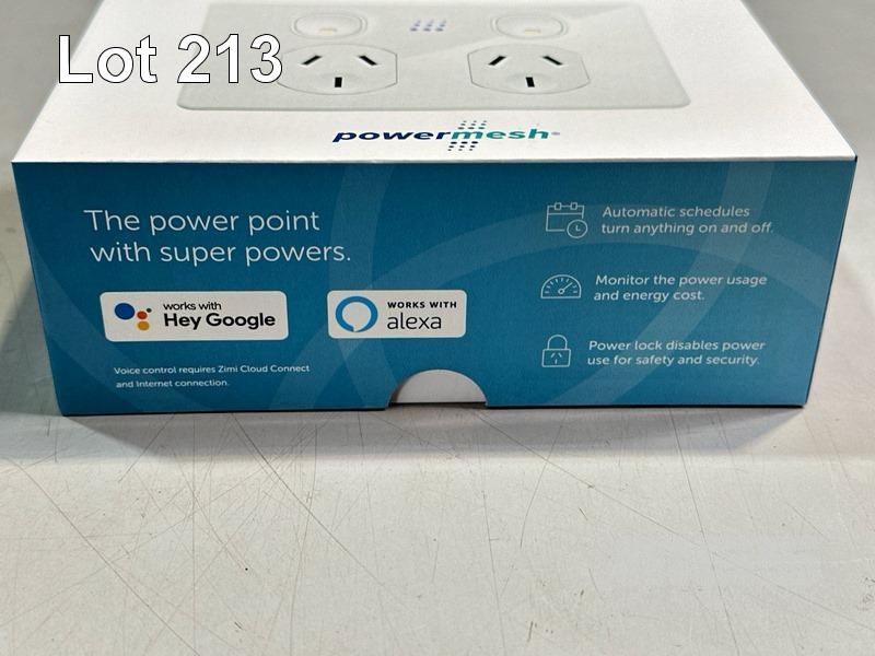 10 x ZIMI POWERMESH DOUBLE POWER POINTS, WHITE, BLUETOOTH CONNECTIVITY, SUPPORTS HEY GOOGLE & ALEXA (RRP $140 each) (SEALED IN BOX)