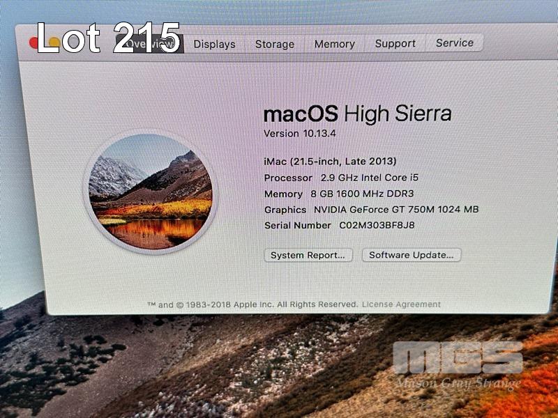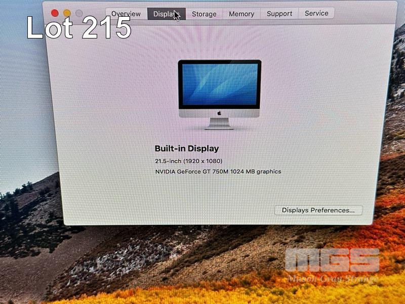 APPLE iMAC (A1418), CORE i5 4570S (4TH GEN) @ 2.9GHz, 8GB DDR3 RAM, 1.12TB FUSION DRIVE, BUILT-IN 21.5" DISPLAY (1920x1080), 1GB NVIDIA GEFORCE GT 750M VIDEO, Wi-Fi, BLUETOOTH, MAC OS 10.13 INSTALLED (NO KEYBOARD, NO MOUSE) S/N:C02M303BF8J8