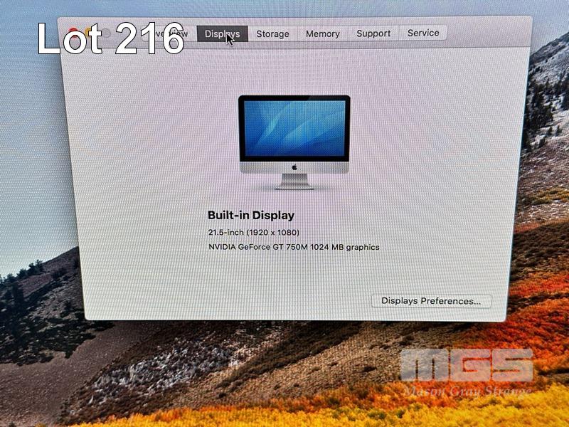 APPLE iMAC (A1418), CORE i5 4570S (4TH GEN) @ 2.9GHz, 8GB DDR3 RAM, 1.12TB FUSION DRIVE, BUILT-IN 21.5" DISPLAY (1920x1080), 1GB NVIDIA GEFORCE GT 750M VIDEO, Wi-Fi, BLUETOOTH, MAC OS 10.13 INSTALLED (NO KEYBOARD, NO MOUSE) S/N:C02M3035F8J8