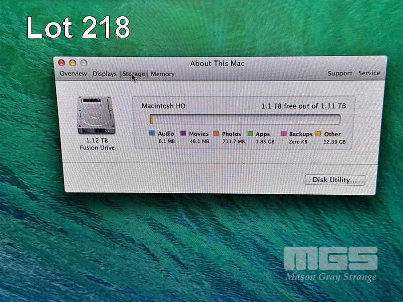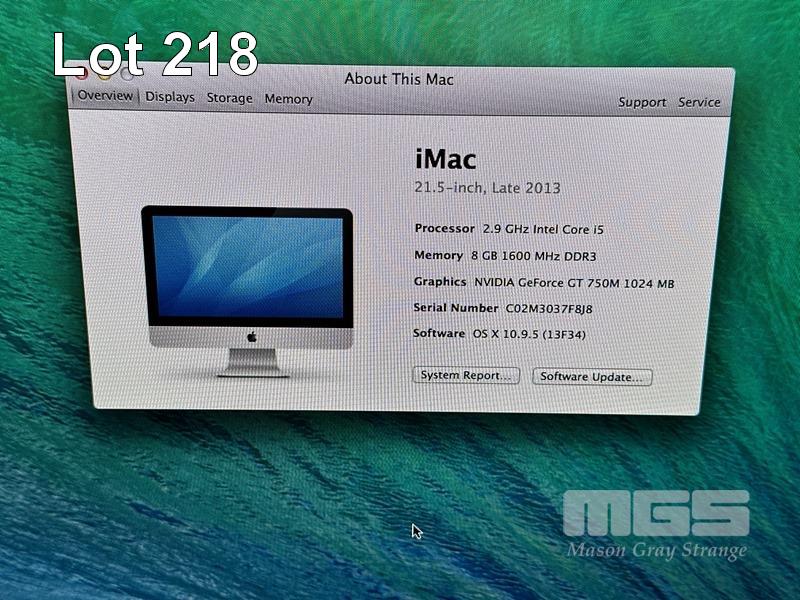 APPLE iMAC (A1418), CORE i5 4570S (4TH GEN) @ 2.9GHz, 8GB DDR3 RAM, 1.12TB FUSION DRIVE, BUILT-IN 21.5" DISPLAY (1920x1080), 1GB NVIDIA GEFORCE GT 750M VIDEO, Wi-Fi, BLUETOOTH, MAC OS 10.9 INSTALLED (NO KEYBOARD, NO MOUSE, NO CABLE) S/N:C02M3037F8J8