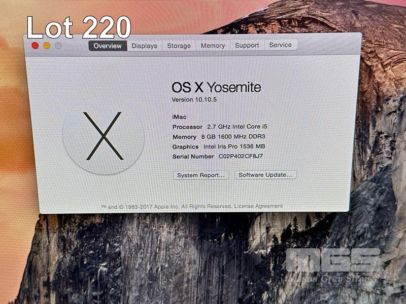 APPLE iMAC (A1418), CORE i5 4570R (4TH GEN) @ 2.7GHz, 8GB DDR3 RAM, 1TB SATA HDD, BUILT-IN 21.5" DISPLAY (1920x1080), INTEL IRIS PRO VIDEO, Wi-Fi, BLUETOOTH, MAC OS 10.10 INSTALLED (NO KEYBOARD, NO MOUSE, NO CABLE) S/N:C02P402CF8J7