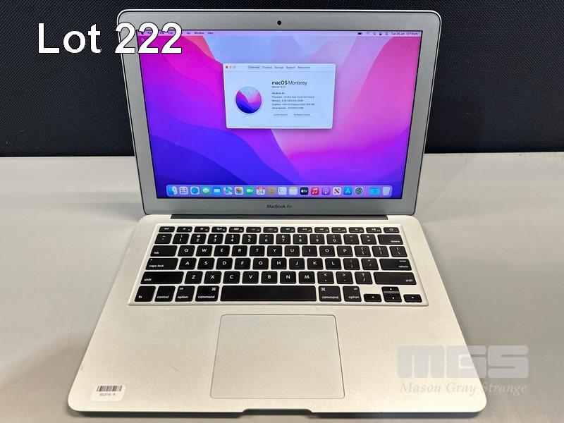 LAPTOP, APPLE MACBOOK AIR (A1466), CORE i5 5350U (5TH GEN) @ 1.8GHz, 8GB DDR3 RAM, 128GB SSD, 13.3" DISPLAY (1440x900), INTEL HD GRAPHICS 6000, Wi-Fi, BLUETOOTH, MAC OS 12 INSTALLED & POWER SUPPLY S/N:FVHXPJGTJ1WK