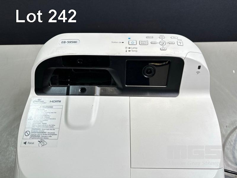 PROJECTOR, EPSON EB-595Wi ULTRA SHORT THROW, 3300 LUMENS, 745 NORMAL HOURS & 19 ECO HOURS SHOWING & REMOTE (NO BRACKET) S/N:UHPK6100181