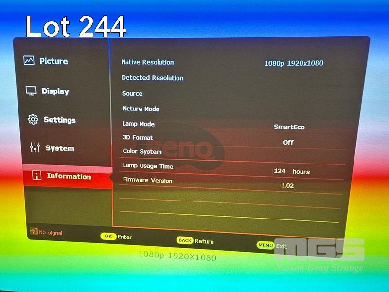 PROJECTOR, BENQ MH550 DLP, 3,500 LUMENS, 124 HOURS SHOWING (NO REMOTE) S/N:PDG9J01428000