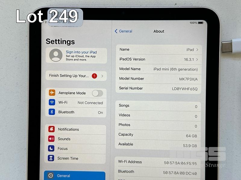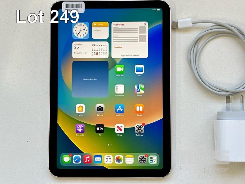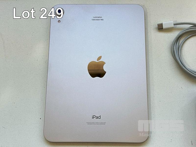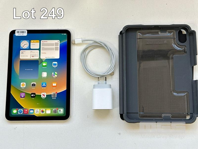 APPLE iPAD MINI 6TH GEN, 64GB, Wi-Fi, STARLIGHT, MODEL MK7P3X/A, A2567 WITH COVER, USB-C CABLE & CHARGER (NOTE: ENGRAVING ON BACK) S/N:LD0YWHF65Q