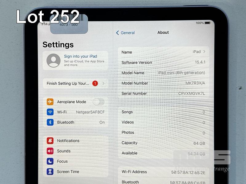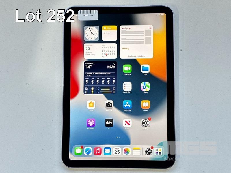 APPLE iPAD MINI 6TH GEN, 64GB, Wi-Fi, PURPLE, MODEL MK7R3X/A, A2567 (NO USB-C CABLE, NO CHARGER) (NOTE: MINOR SCRATCHES ON SCREEN, ENGRAVING ON BACK) S/N:CPVXMGVK7L