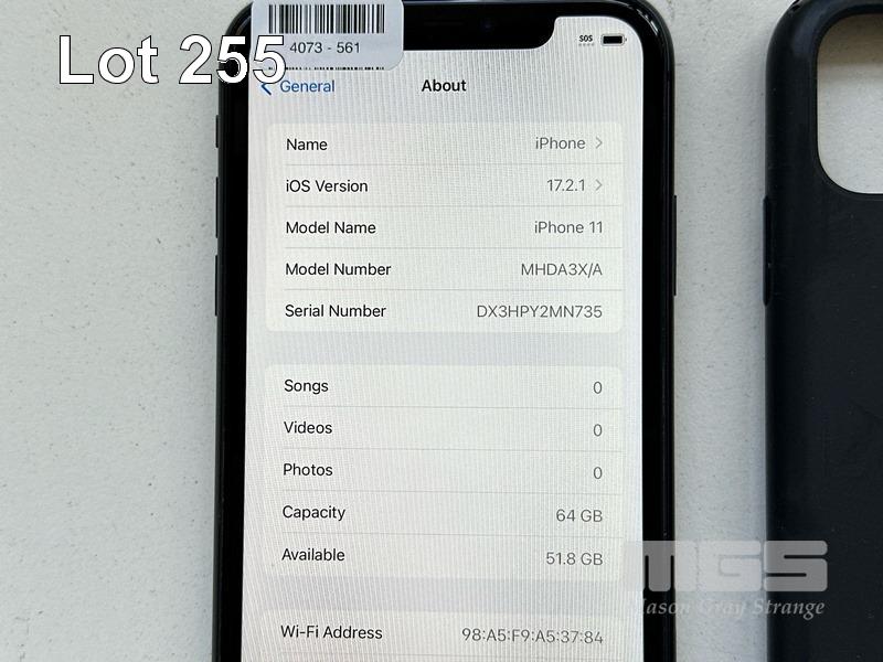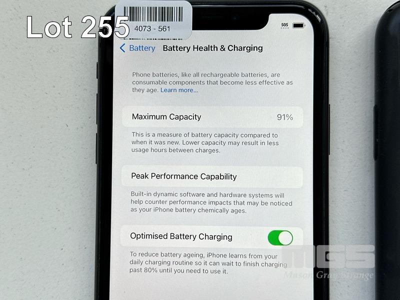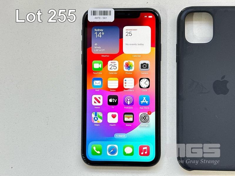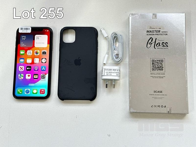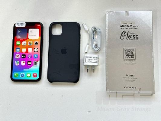 APPLE iPHONE 11, 64GB, BLACK, MODEL MHDA3X/A, BATTERY HEALTH 91% WITH CABLE, CHARGER, COVER & SCREEN PROTECTOR (NOTE: MINOR SCRATCHES ON SCREEN) S/N:DX3HPY2MN735