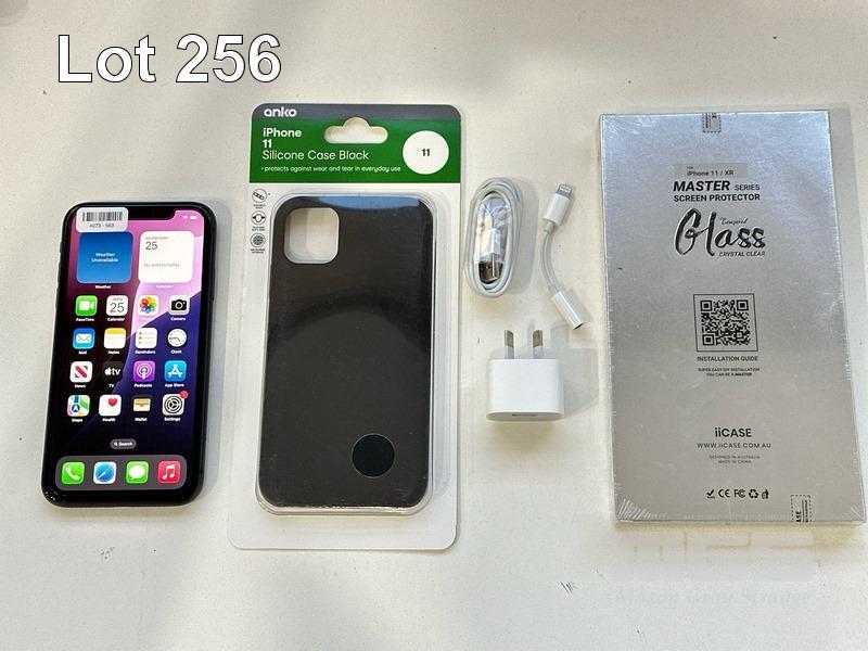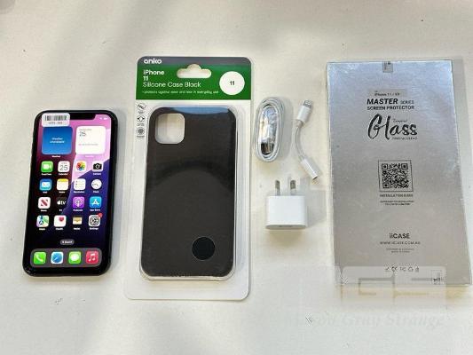 APPLE iPHONE 11, 64GB, BLACK, MODEL MHDA3X/A, BATTERY HEALTH 97% WITH CABLE, CHARGER, COVER & SCREEN PROTECTOR S/N:DX3HRUL8N735