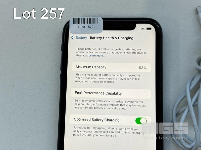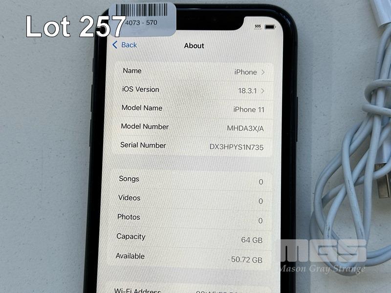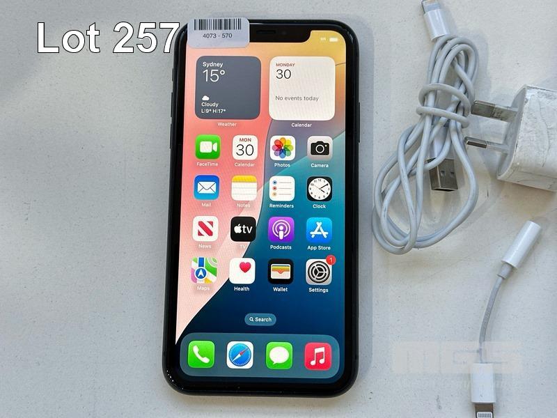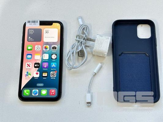 APPLE iPHONE 11, 64GB, BLACK, MODEL MHDA3X/A, BATTERY HEALTH 93% WITH CABLE, CHARGER & COVER (NOTE: MINOR SCRATCHES ON SCREEN) S/N:DX3HPYS1N735