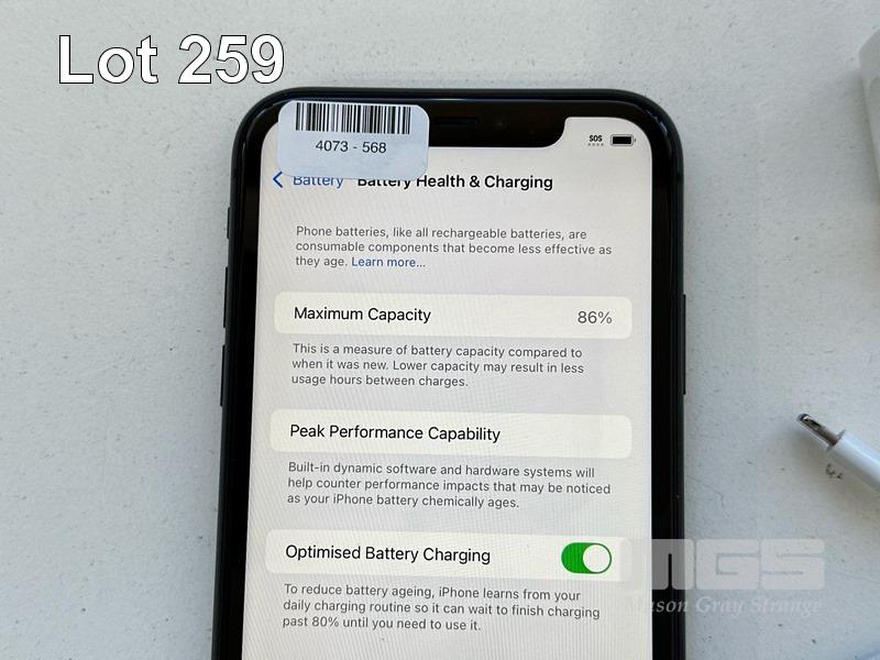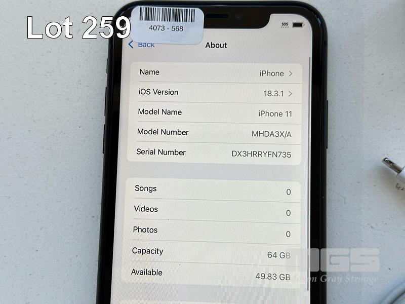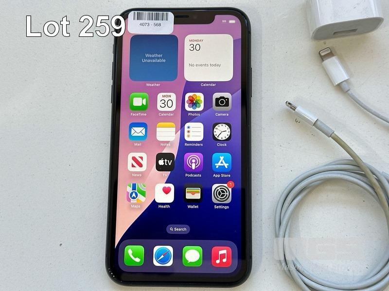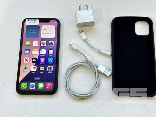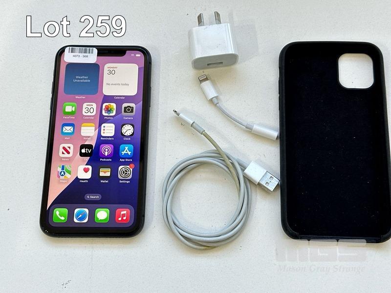 APPLE iPHONE 11, 64GB, BLACK, MODEL MHDA3X/A, BATTERY HEALTH 86% WITH CABLE, CHARGER & COVER (NOTE: MINOR SCRATCHES ON SCREEN) S/N:DX3HRRYFN735
