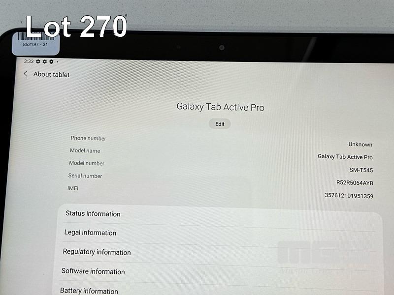 SAMSUNG GALAXY TAB ACTIVE PRO, 64GB, Wi-Fi, CELLULAR, MODEL SM-T545 (NO USB-C CABLE, NO CHARGER) S/N:R52R5064AYB
