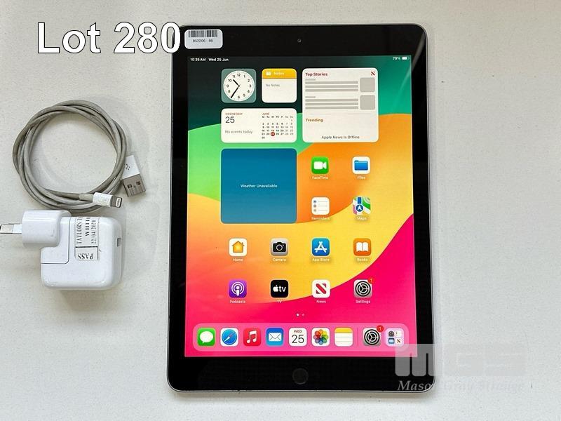 APPLE iPAD 6TH GEN, 32GB, Wi-Fi, SPACE GREY, MODEL MR7F2X/A, A1893 WITH CABLE & CHARGER (NOTE: MINOR SCRATCHES ON SCREEN) S/N:DMPXDFMYJF8J