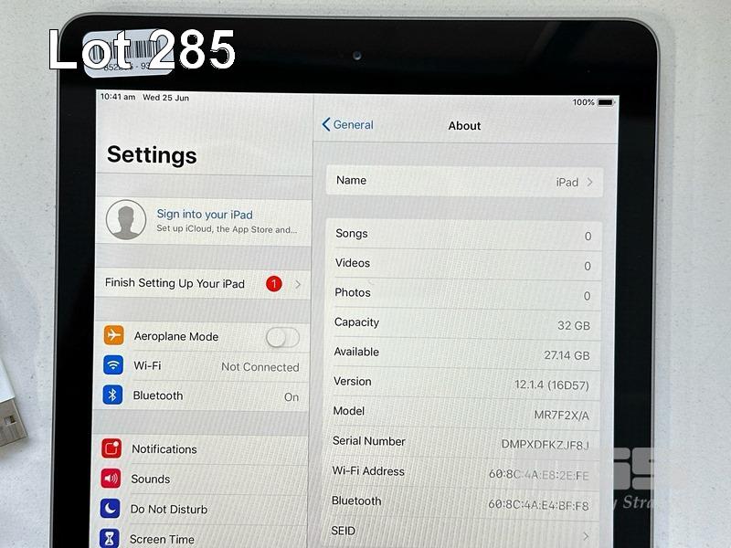 APPLE iPAD 6TH GEN, 32GB, Wi-Fi, SPACE GREY, MODEL MR7F2X/A, A1893 WITH CABLE & CHARGER (NOTE: MINOR SCRATCHES ON SCREEN) S/N:DMPXDFKZJF8J
