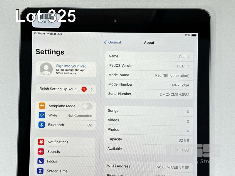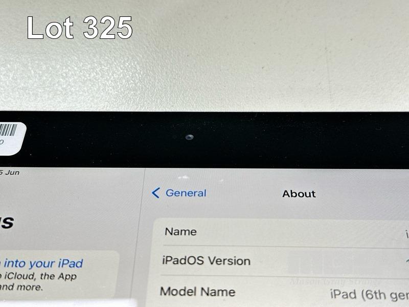 APPLE iPAD 6TH GEN, 32GB, Wi-Fi, SPACE GREY, MODEL MR7F2X/A, A1893 (NO CABLE, NO CHARGER) (NOTE: SMALL BRIGHT SPOT ON SCREEN, MINOR SCRATCHES ON SCREEN) S/N:DMQXCMBHJF8J