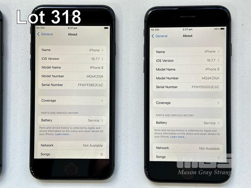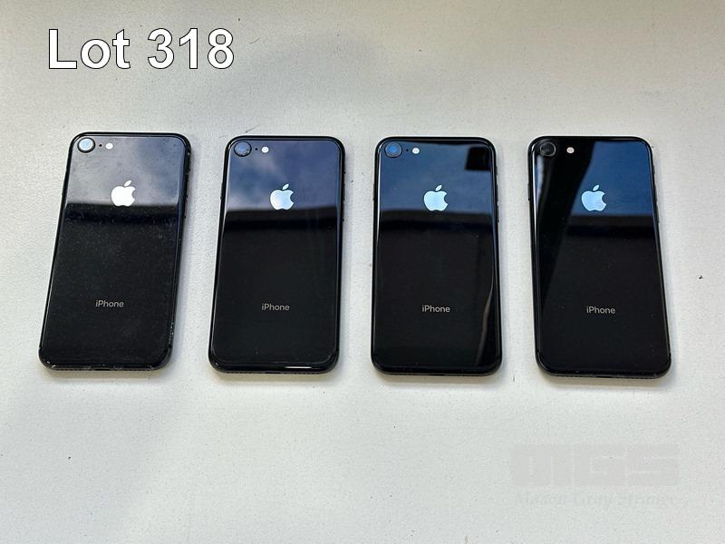 4 x APPLE iPHONE 8, 64GB, SPACE GREY, MODEL MQ6K2X/A (NOTE: ALL BATTERY SERVICE MESSAGE) (NO CABLES, NO CHARGERS)