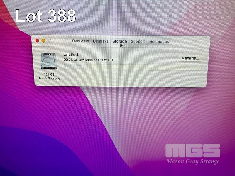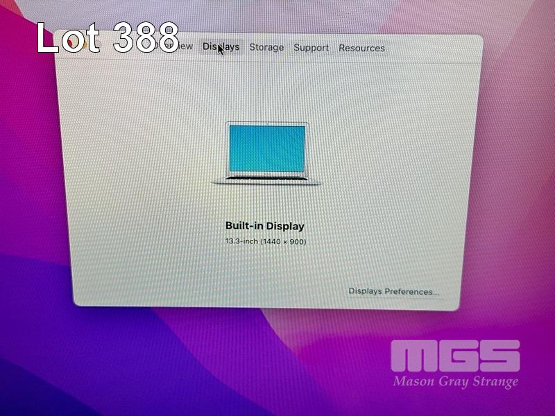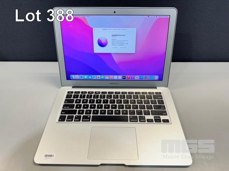 LAPTOP, APPLE MACBOOK AIR (A1466), CORE i5 5250U (5TH GEN) @ 1.6GHz, 8GB DDR3 RAM, 128GB SSD, 13.3" DISPLAY (1440x900), INTEL HD GRAPHICS 6000, Wi-Fi, BLUETOOTH, MAC OS 12 INSTALLED (NO POWER SUPPLY) (NOTE: BATTERY NOT CHARGING) S/N:FVFSNJ1EH3QD