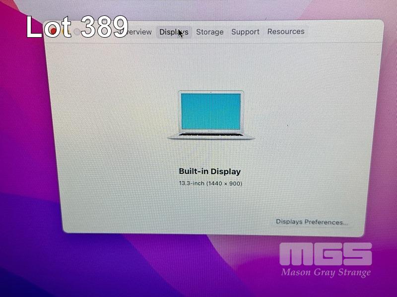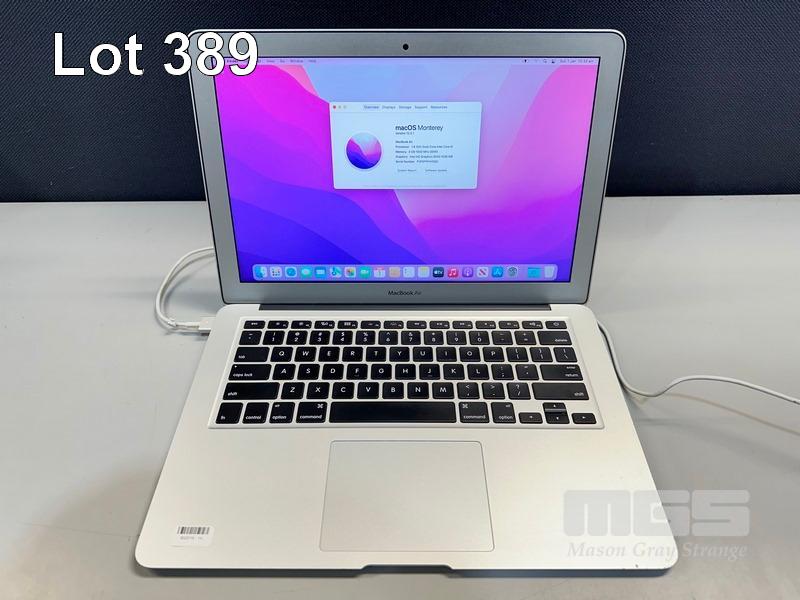 LAPTOP, APPLE MACBOOK AIR (A1466), CORE i5 5250U (5TH GEN) @ 1.6GHz, 8GB DDR3 RAM, 128GB SSD, 13.3" DISPLAY (1440x900), INTEL HD GRAPHICS 6000, Wi-Fi, BLUETOOTH, MAC OS 12 INSTALLED (NO POWER SUPPLY) (NOTE: BATTERY NOT CHARGING) S/N:FVFSP1PVH3QD