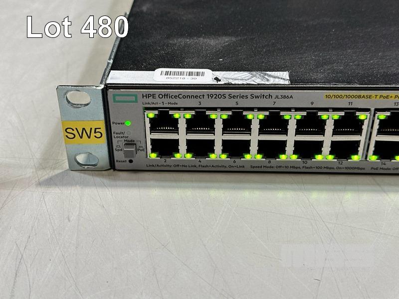 HPE OFFICECONNECT 1920S SERIES 48G 4SFP PPoE+ 370W NETWORK SWITCH, JL386A WITH NOTCH POWER CABLE S/N:CN96K3R079