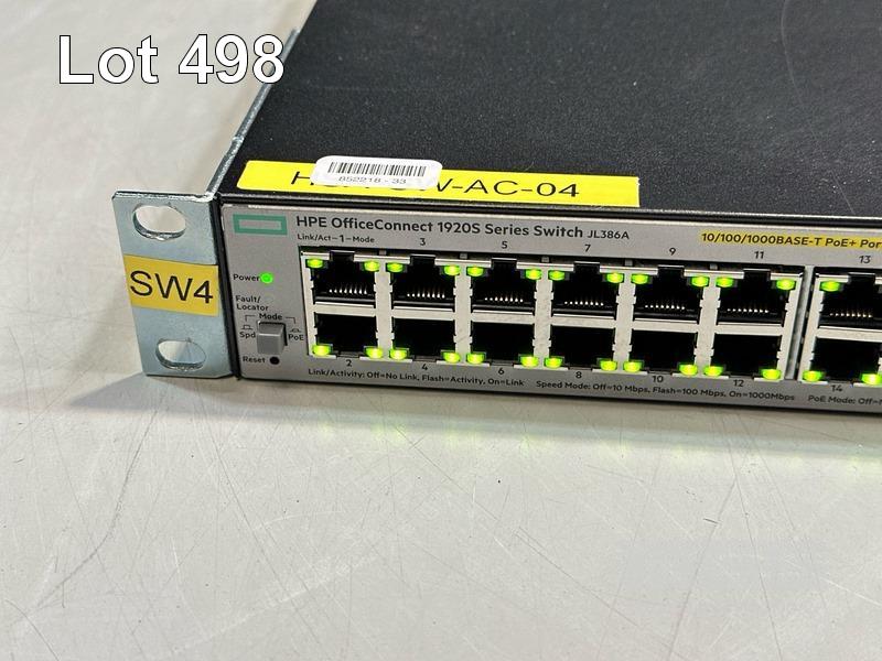 HPE OFFICECONNECT 1920S SERIES 48G 4SFP PPoE+ 370W NETWORK SWITCH, JL386A WITH NOTCH POWER CABLE S/N:CN96K3R06V