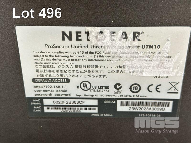 NETGEAR PROSECURE UTM10 UNIFIED THREAT MANAGEMENT NETGEAR PROSAFE 50-PORT GIGABIT L2+ M4100-50G NETWORK SWITCH S/N:23W2023A0009B, 3934525X00001