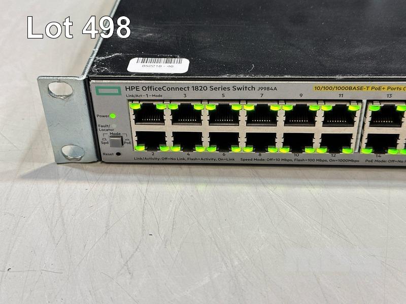 HPE OFFICECONNECT 1820 SERIES 48G 4SFP PoE+ 370W NETWORK SWITCH, J9984A WITH NOTCH POWER CABLE S/N:CN7BGN005S