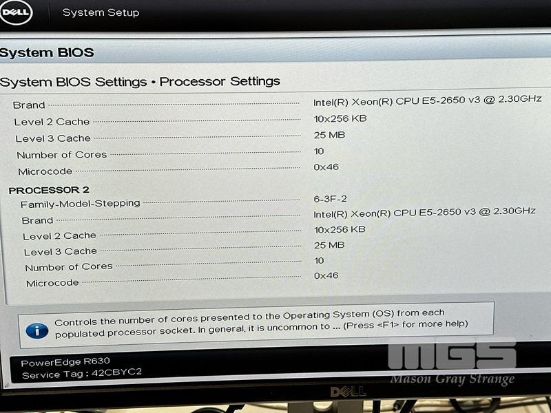 RACKMOUNT SERVER, DELL POWEREDGE R630, 1U, 2 x XEON E5-2650 v3 @ 2.3GHz, 64GB ECC DDR4 RAM, NO HDD, 2-PORT QLOGIC QLE2562 8GB FIBRE CHANNEL, 2 x 750W PSU (NO CABLES) S/N:42CBYC2