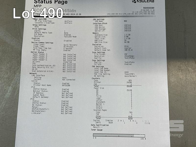 PRINTER, KYOCERA ECOSYS M3645idn MONO LASER MULTIFUNCTION, ADF, USB, NETWORK, 25,109 PAGES (TEST PAGE ATTACHED) S/N:R4U9300389