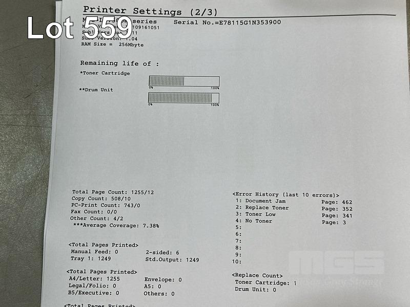 PRINTER, BROTHER MFC-L2750DW MONO LASER MULTIFUNCTION, ADF, USB, NETWORK, 1,255 PAGES (TEST PAGE ATTACHED) S/N:E78115G1N353900