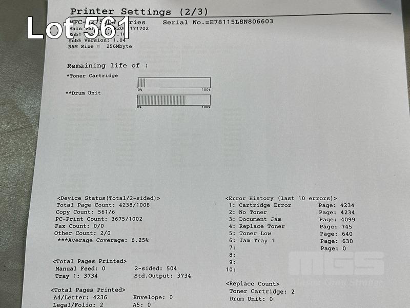 PRINTER, BROTHER MFC-L2750DW MONO LASER MULTIFUNCTION, ADF, USB, NETWORK, 4,238 PAGES (TEST PAGE ATTACHED) S/N:E78115L8N806603
