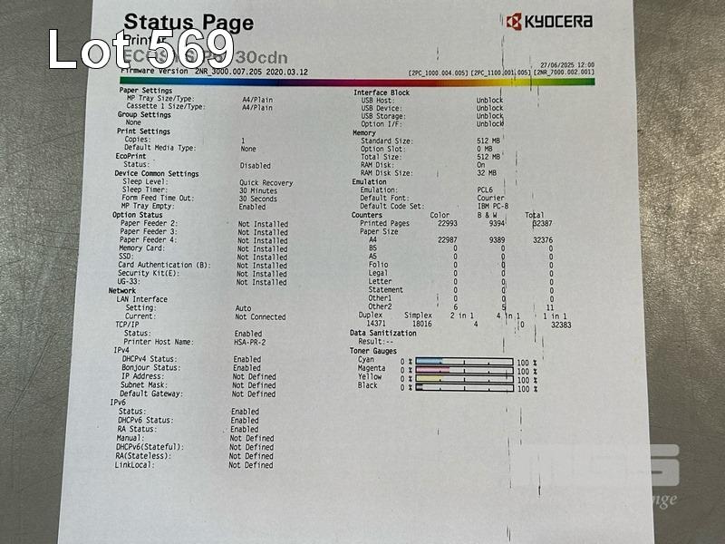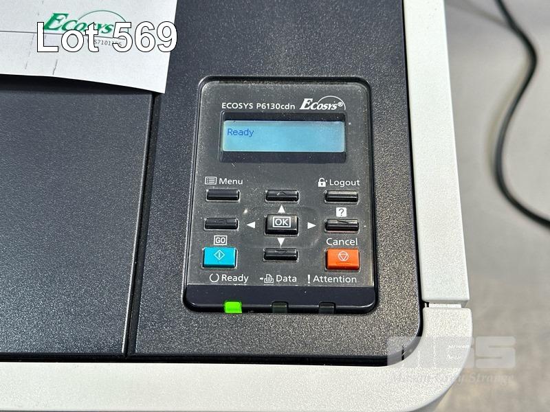PRINTER, KYOCERA ECOSYS P6130cdn COLOUR LASER, USB, NETWORK, 22,987 COLOUR & 9,389 B&W PAGES (TEST PAGE ATTACHED - POOR) S/N:V5S7101155