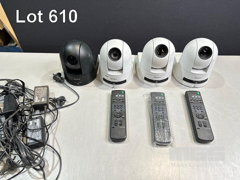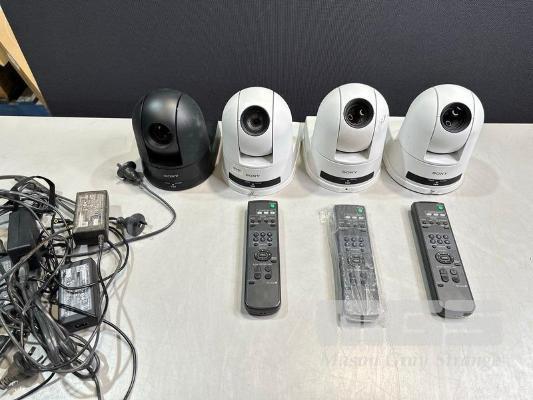 3 x SONY SRG-300H HD PTZ CAMERAS WITH REMOTES & POWER SUPPLIES