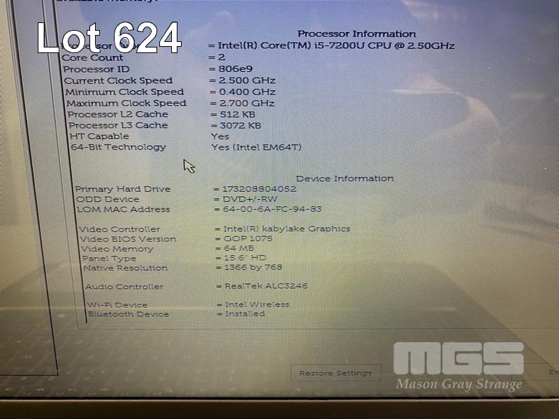 LAPTOP, DELL INSPIRON 15 5567, CORE i5 7200U (7TH GEN) @ 2.5GHz, 8GB DDR4 RAM, 250GB SSD, DVD-RW, 15.6" WIDESCREEN (1366x768), INTEL HD GRAPHICS 620, Wi-Fi, BLUETOOTH, WINDOWS 10 PRO INSTALLED & POWER SUPPLY (NOTE: MINOR MARKS ON SCREEN) S/N:DLDBJ22