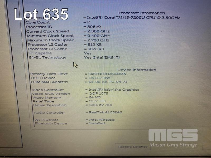 LAPTOP, DELL INSPIRON 15 5567, CORE i5 7200U (7TH GEN) @ 2.5GHz, 8GB DDR4 RAM, 250GB SSD, DVD-RW, 15.6" WIDESCREEN (1366x768), INTEL HD GRAPHICS 620, Wi-Fi, BLUETOOTH, WINDOWS 10 PRO INSTALLED & POWER SUPPLY (NOTE: BATTERY NOT CHARGING, BIOS BATTERY FAULT) S/N:G1G8J22