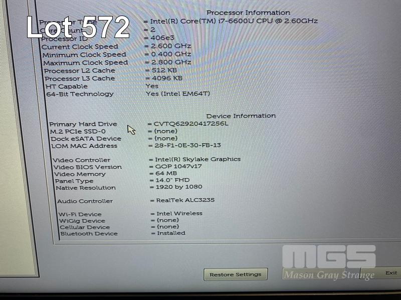 LAPTOP, DELL LATITUDE E7470, CORE i7 6600U (6TH GEN) @ 2.6GHz, 16GB DDR4 RAM, 256GB M.2 SSD, 14" WIDESCREEN (1920x1080), INTEL HD GRAPHICS 520, Wi-Fi, BLUETOOTH, WINDOWS 10 HOME INSTALLED & POWER SUPPLY (NOTE: BATTERY ERROR) S/N:BR92MC2