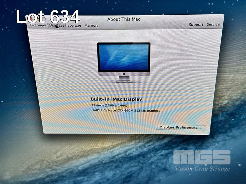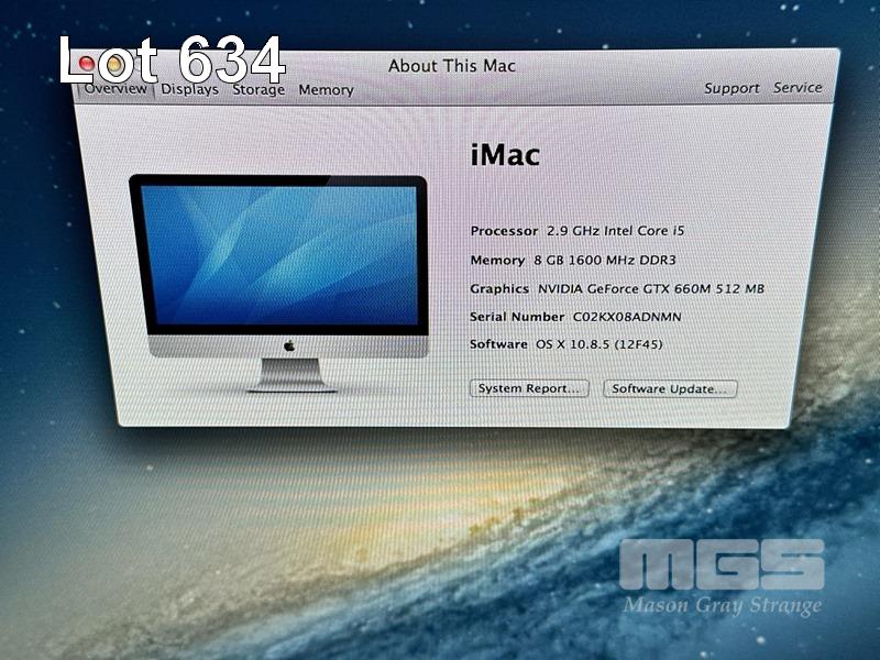 APPLE iMAC (A1419), CORE i5 3470S (3RD GEN) @ 2.9GHz, 8GB DDR3 RAM, 1TB SATA HDD, BUILT-IN 27" DISPLAY (2560x1440), 512MB NVIDIA GEFORCE GTX 660M VIDEO, Wi-Fi, MAC OS 10.8 INSTALLED, KEYBOARD & MOUSE (NOTE: STAND HINGE LOOSE, SCREEN TILTS FORWARD) S/N:C02KX08ADNMN
